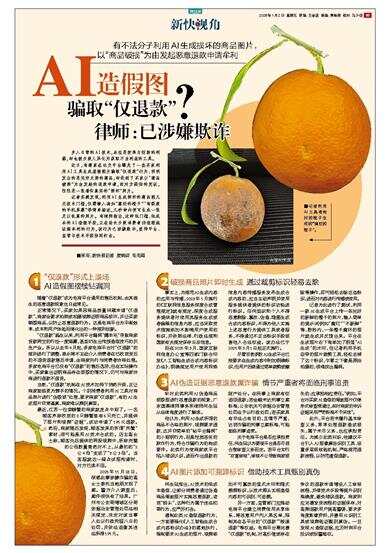 记者实测发现,利用AI生成损坏的商品图几无技术门槛,仅需输入诸如“腐烂的橙子”“有裂痕的手机屏幕”等简单描述,几秒钟内便可生成一张足以乱真的照片。有律师指出,这种低门槛、低成本的AI造假手段,正在助长少数消费者伪造瑕疵证据牟利的行为,该行为已涉嫌欺诈,亟待平台、监管与技术手段协同打击。