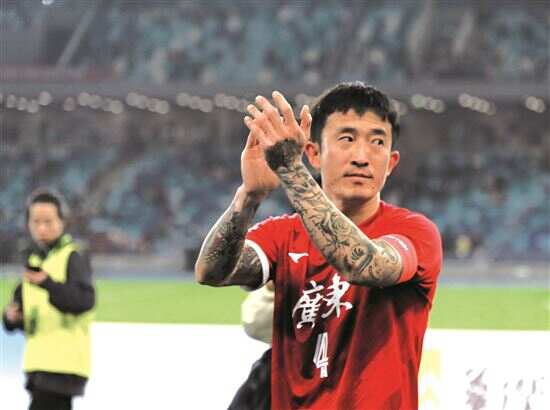 ■广东队队长姜至鹏赛后向球迷致谢。
