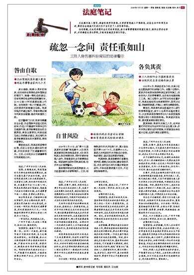法官提醒,赛事组织者应当做好准备工作,赛前检查场地和器材装备能否达到比赛标准,要在比赛中配备相应的医疗保障,一旦发生意外情况能够及时启动应急预案。同时,参与者也应当意识到足球、篮球等运动的风险性,尽可能遵守比赛规则,规范自身的技术动作,避免“有意为之”造成他人人身损害的行为,摆正比赛心态,保护自己、保护对手,真正体现团结协作、尊重对手和公平竞赛的体育精神。