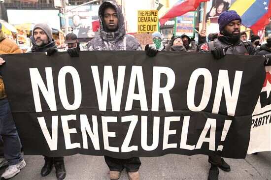 ■1月3日,近千名民众在美国纽约举行集会游行,抗议美国对委内瑞拉实施军事打击。新华社发