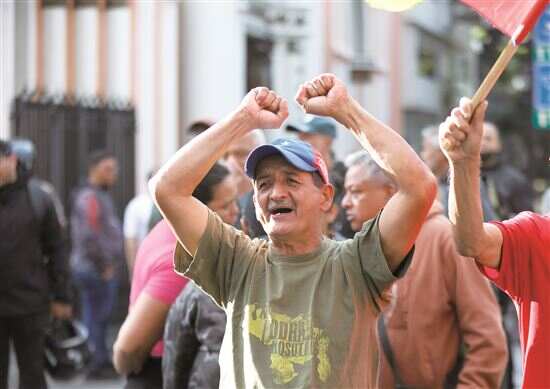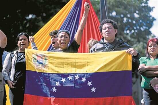 ■1月3日,在委内瑞拉首都加拉加斯,民众在米拉弗洛雷斯宫附近集会。新华社发