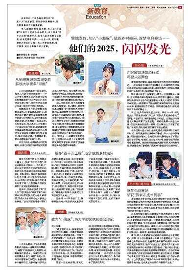 有人毅然奔赴雪域支教、有人在“小海豚”的岗位上见证全运会荣光,有人投身“百千万工程”挥洒汗水,也有人在央视舞台上绽放、在电竞赛场夺奖……过去一年,朝气蓬勃的大学生们以独一无二的青春笔触,写下探索、成长与奉献的动人故事。