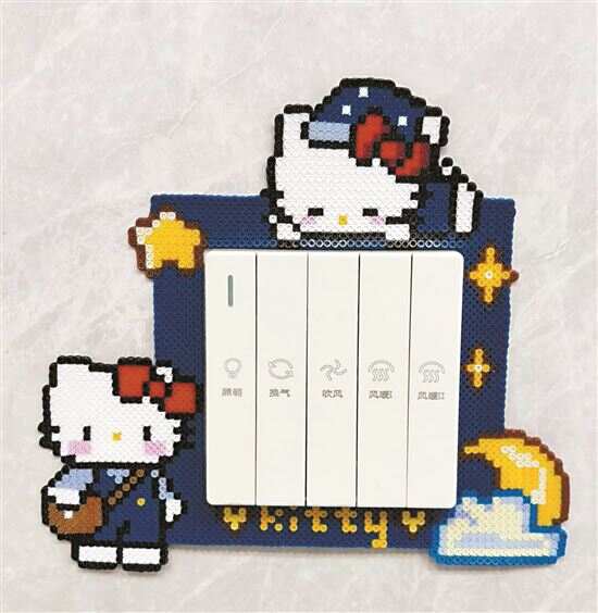 新一代玩家推动玩法多维突破。一是形态拓展,平面作品进阶为立体磁悬浮摆件、微缩食物、IP手办、收纳盒等,甚至出现拼豆时钟、开关插座框、杯垫、门牌、小夜灯、手链、风铃等实用物件,让家居角落充满“像素风韵”;二是质感模拟,探索出“毛巾烫”“毛毛烫”“烘焙纸烫”等技法,模拟毛绒、拉丝等效果,逼真还原披萨、荷包蛋等食物模型,或打造动物毛发的柔软质感;三是技术赋能,借助专业网站、AI工具将自拍照、宠物照、影视角色转换为像素化图纸,实现从手工拼贴到半自动创作的跨越,被圈内戏称为“拼豆界的工业革命”。