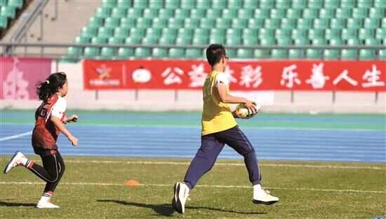 ■青少年们在橄榄球赛场上挥洒汗水。
