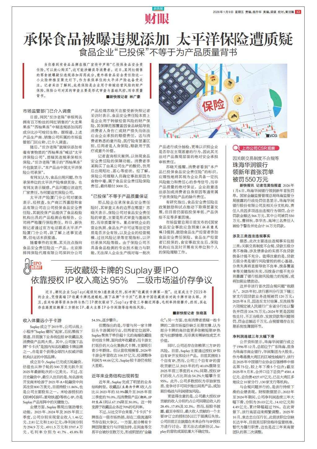 承保食品被曝违规添加 太平洋保险遭质疑