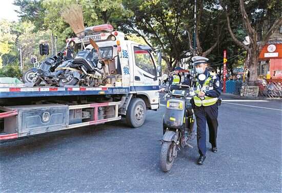 ■1月9日,广州交警在新港西路查处违法电动自行车。2026年第一周,广州交警查处电动自行车交通违法行为14.9万宗,同比上升六成。