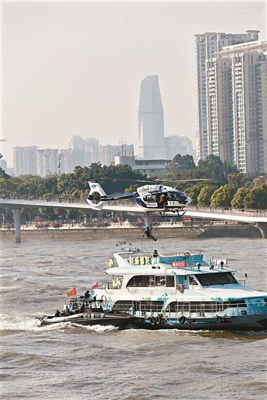■1月10日,水陆空全域协同警务实战演练在广州塔下的珠江水面上举行。