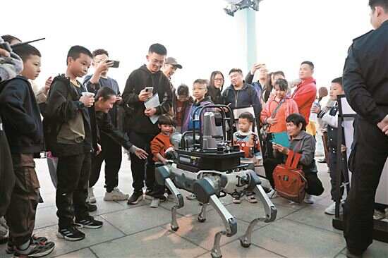 ■公安装备展示区,警用网捕机器狗吸引了众多市民关注。