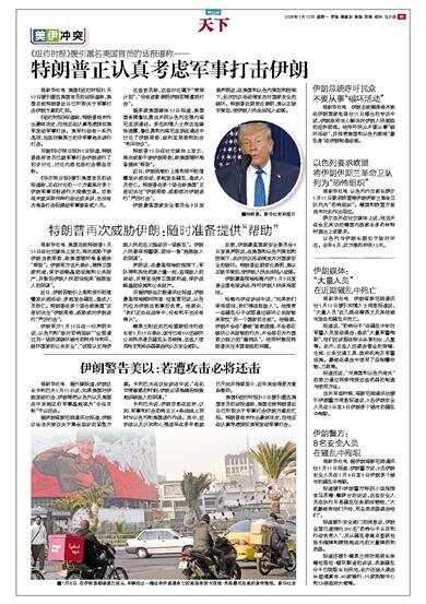 据新华社电 美国《纽约时报》1月10日援引匿名美国官员的话报道称,美国总统特朗普近日已听取关于军事打击伊朗方案的汇报。