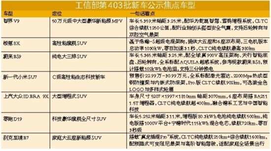 同样不可忽视的是,新车激战正酣之际,一批重磅车型已在工信部公示名单中崭露头角。1月8日,工信部第403批《道路机动车辆生产企业及产品公告》正式公示,涵盖自主品牌新品牌、合资新能源转型产品、新势力旗舰车型的新品揭开面纱,预示着2026年车市的竞争将进一步升级,产品矩阵将更加丰富。