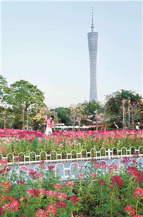 ■1月14日,广州最高温度回升至27℃,二沙岛宏城公园醉蝶花竞相绽放。
