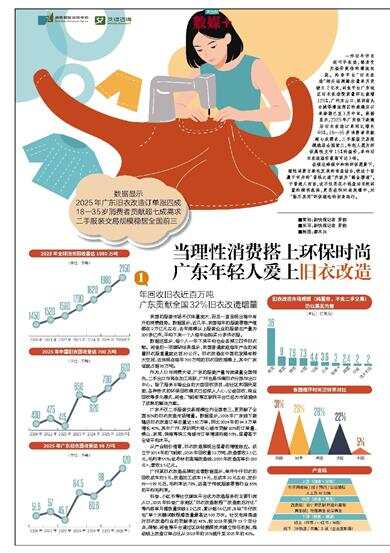 一件旧牛仔衣经巧手改造,摇身变为溢价数倍的潮流包袋。抖音平台“旧衣改造”相关话题播放量单月突破8.2亿次,闲鱼平台广东地区旧衣改造搜索量环比激增120%,广州东山口、深圳南头古城等潮流街区的裁缝店订单排期已至3月中旬。数据显示,2025年广东线下裁缝店旧衣改造订单同比增长40%,18—35岁消费者贡献超七成需求,二手服装交易规模稳居全国前三,年轻人愿为环保属性支付15%的溢价,单件旧衣改造溢价最高可达3倍。