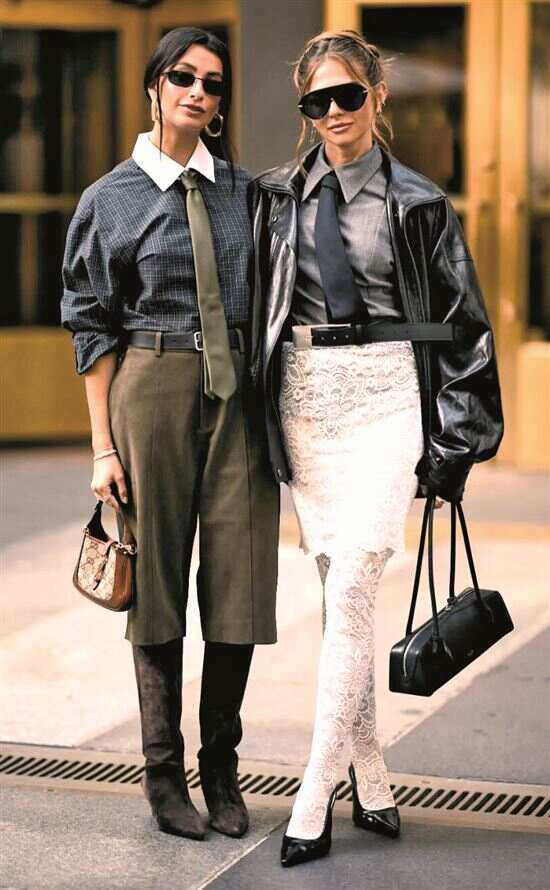 日常搭配中“反差材质组合”如硬挺皮革外套搭垂感衬衫更令简约造型焕发高级感。