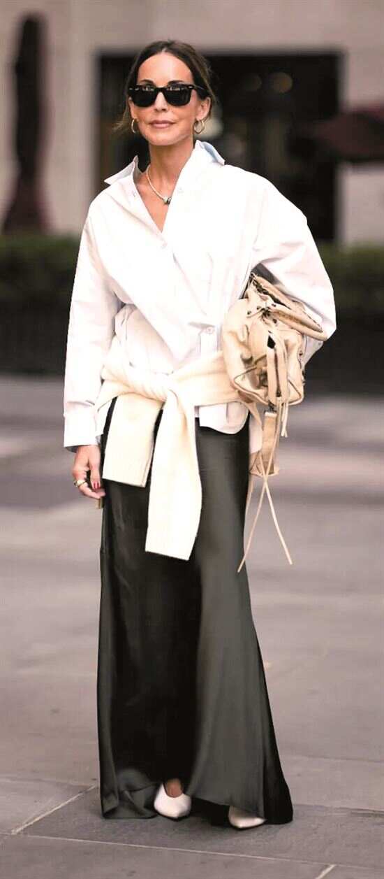 ▲低饱和度彩色打破中性色沉闷,让通勤造型在“不抢眼”前提下尽显品位。