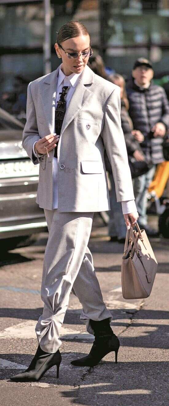 ▲职场中经典套装融入高街风格前卫剪裁,正式感与时髦感兼顾。