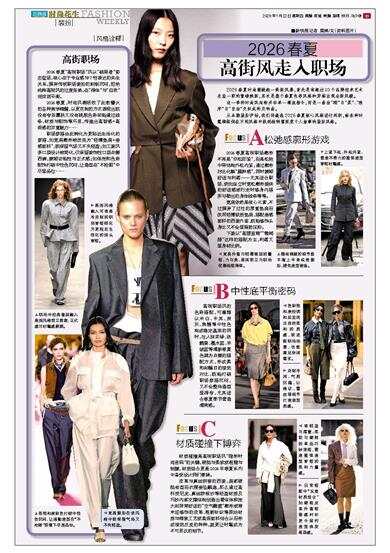 2026春夏“高街职场”风以“破局者”姿态登场,核心在于专业感与个性表达的共生关系,摒弃传统职场装扮的刻板沉闷,拒绝纯粹高街风的过度张扬,在“得体”与“自我”间找到平衡。