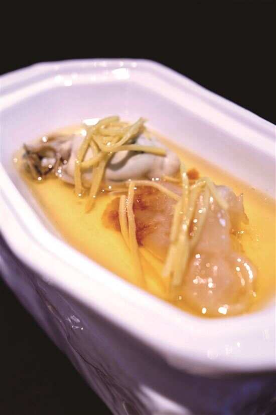 ■姜油花胶台山生蚝,姜油是个好东西,事先以高汤煨进底味的花胶既香且糯,非常搭。