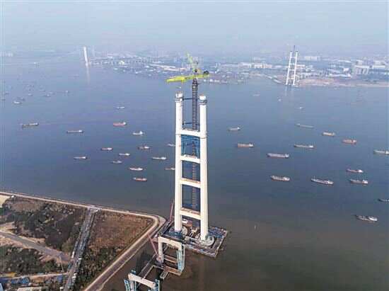 ■狮子洋大桥主塔成为珠江口第一高塔。摄影/张政