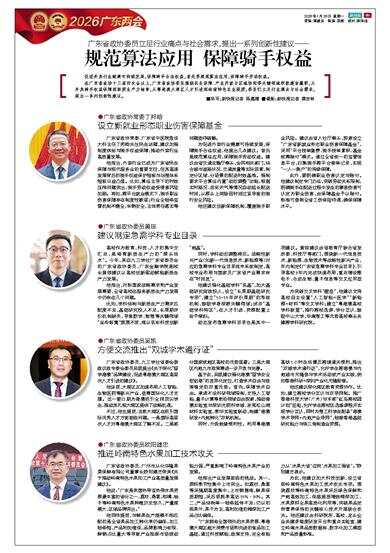 在广东省政协十三届四次会议上,广东省政协委员围绕民生保障、产业升级与区域协同等关键领域积极建言履职,从外卖骑手权益保障到新质生产力培育,从粤港澳大湾区人才引进到岭南特色农业提质,委员们立足行业痛点与社会需求,提出一系列创新性建议。