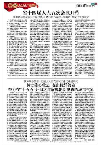 新快报讯 1月26日下午,省人大代表、省委书记黄坤明参加他所在的省十四届人大五次会议广州代表团全体会议,与代表们一起审议省政府工作报告,强调广州要深入学习贯彻习近平总书记对广东、对广州系列重要讲话和重要指示精神,围绕实现总书记赋予的使命任务,按照省委工作安排,守正创新、接续奋斗,奋力在开局之年干出开局之势,在关键之年干出关键之为,加快实现老城市新活力和“四个出新出彩”,不断开创广州现代化建设新局面,更好发挥排头兵、领头羊、火车头作用,为广东在推进中国式现代化建设中走在前列作出新的更大贡献。