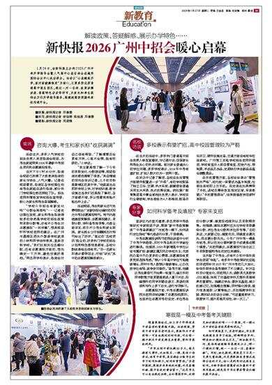 1月24日,由新快报主办的2026广州中考升学指导会暨人气高中公益咨询会在越秀国际会议中心成功举办。活动以“公益赋能升学,面对面破解焦虑”为核心,汇聚多所优质普通高中招生团队,通过一对一咨询、政策讲解讲座、普高特色访谈等环节,为家长和考生提供全方位升学指导服务,搭建起高效便捷的家校沟通平台。