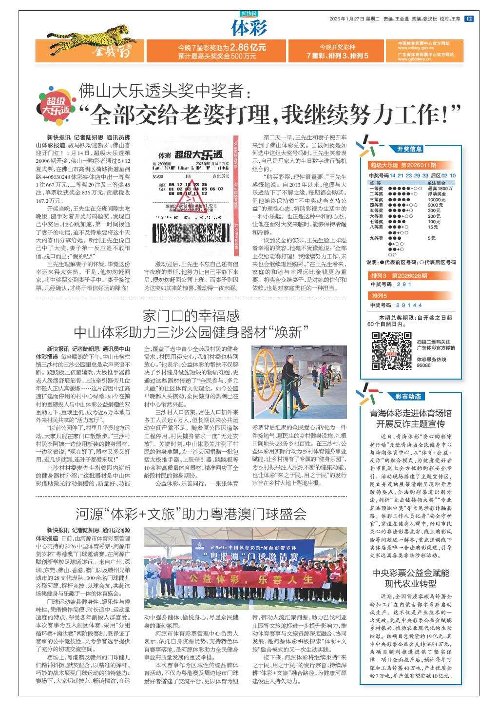 佛山大乐透头奖中奖者:“全部交给老婆打理,我继续努力工作!”