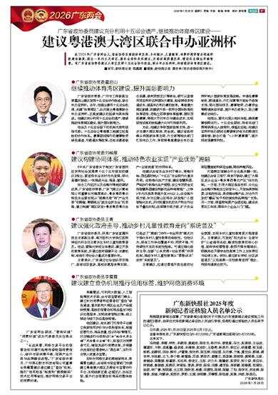 在2026年广东省两会上,省政协委员围绕体育发展、乡村振兴、儿童教育、消费环境等重点领域积极建言献策,提出一系列立足湾区、服务全局的务实建议,为推动高质量发展、增进民生福祉贡献智慧。有广东省政协常委建议大湾区发挥十五运会协作效益,联合申办亚洲杯,持续推动体育湾区建设。