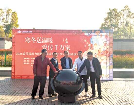 活动现场,随着河源市民政局、市文联、市福利彩票发行中心等单位代表按下启动球,“寒冬送温暖、爱传千万家——2026年春节民政为民暨送春联下乡活动”正式拉开帷幕。