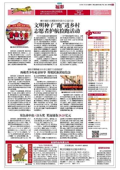 今晚双色球奖池29.25亿元 预计头奖奖金1000万元