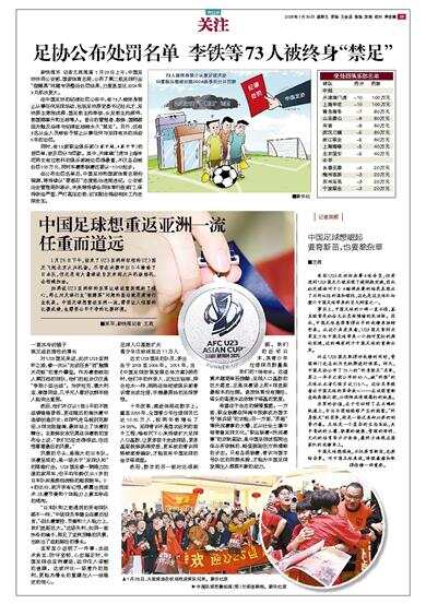 在中国足协的纪律处罚公告中,有73人被终身禁止从事任何足球活动,包括足协原党委书记杜兆才、足协原主席陈戌源、国足前主帅李铁、女足前主帅郝伟、前国脚秦升和王栋等人。昔日的管理者、教练、国脚都因为触及法律与纪律红线被永久“禁足”。另外,还有3名从业人员被给予禁止从事任何与足球有关的活动5年的处罚。