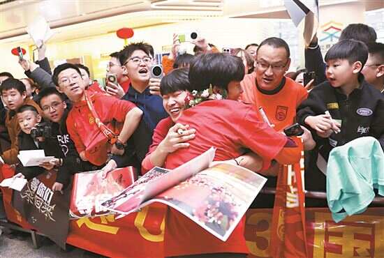 ▲1月26日,大批球迷在机场欢迎球队归来。新华社发