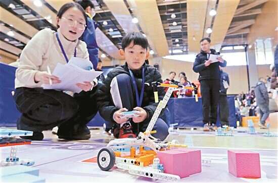 ■学生在机器人竞赛中感受科技魅力。新华社发
