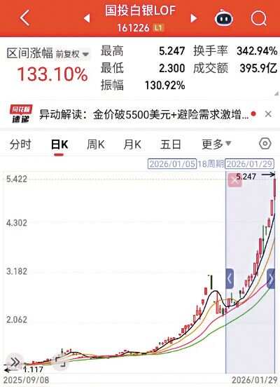 昨日,国投白银LOF发布公告,该基金将于2026年1月30日开市起停牌至收市。若该基金2026年2月2日二级市场交易价格溢价幅度未有效回落,则可通过向深交所申请盘中临时停牌、延长停牌时间等措施向市场警示风险。