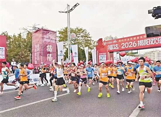新快报讯 记者陆妍思 通讯员揭阳体彩报道 1月25日7时30分,揭阳楼广场鼓乐喧天。随着奥运冠军孙淑伟鸣枪发令,2026揭阳榕江欢乐跑正式开跑。5000名跑友身着“榕江蓝”“生态绿”参赛服,如潮水般奔涌而出,踏上10公里赛道,以脚步丈量城市,用奔跑串联起揭阳古城的新景风华。揭阳体彩鼎力助阵、全程护航,让全民奔跑的热情与非遗民俗的独特风情在榕江之畔交相辉映,勾勒出一幅充满活力的城市运动嘉年华图景。