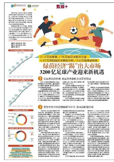 绿茵经济“踢”出了大市场。数据显示,2025年中国足球产业规模达3200亿元,用品和赛事占收入结构的六成半,丰富而充满活力的产业链上拥有21.2万场赛事、1.76万家足球相关企业、4.23万所校园足球特色学校、12.6万名持证教练、近百万名社会业余球员和3.8亿名球迷。