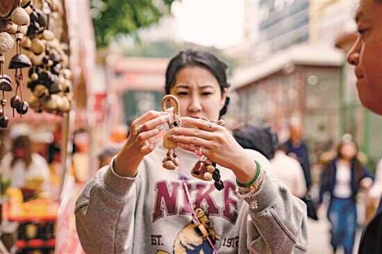 此外,在永庆坊等景区,通草画、木雕、非遗植物染、非遗绒花等工艺品也十分受欢迎,带有马年造型的尤为畅销。