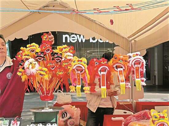 作为广州非遗代表的醒狮文创,也为花市及各大集市注入了浓厚年味。广州南国醒狮团工作人员小石告诉新快报记者,受文旅部门邀请,春节前他们会在花城广场、北京路、西湖花市等场地设摊展示,文创产品种类丰富,匹配各年龄层消费者的喜好。小石介绍,老人家偏爱喜庆的醒狮大挂件,会买来放在书桌;小朋友喜欢可互动的“棒棒狮”,拿在手里晃动玩耍;年轻人则热衷车载摆件和首饰。