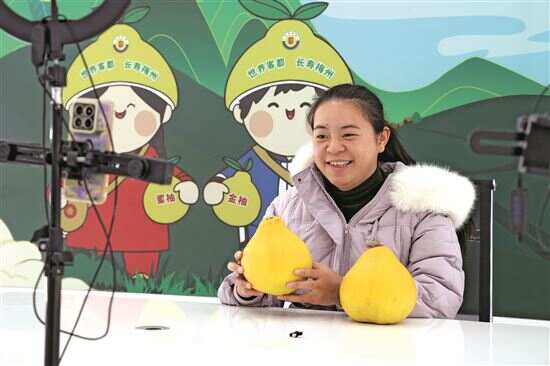 ■松源金柚通过直播销往全国各地。