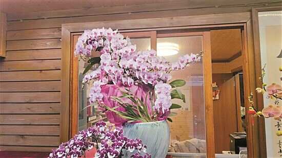 林先生告诉新快报记者,蝴蝶兰性喜高温、多湿和半阴环境,多自然生长在低海拔热带和亚热带丛林的树干上。他的团队通过控温、控湿技术把控蝴蝶兰的开放状态和花期长度。林先生店铺内陈列的蝴蝶兰大多已盛放超过一个月,记者看到大辣椒、牛魔王、红龙等品种开得明艳动人。林先生介绍,只要气候适宜,这类A级蝴蝶兰的花期可达四五个月。