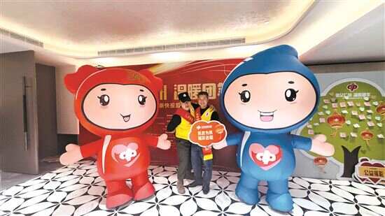 1月31日中午,广州远洋宾馆宴会厅门前,一对高逾两米、活泼可爱的中国福利彩票吉祥物“福福”和“彩彩”迎接四百多位特殊的“家人”陆续入席……
