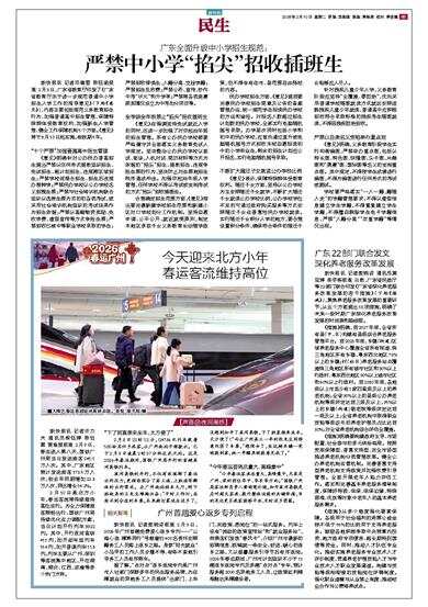 2月10日是北方小年,春运客流将持续维持高位运行。为全力保障旅客顺畅出行,国铁广州局持续优化运力调配方案,当日计划开行列车3822列。其中,开行夜间高铁411列,加开动车组列车514列,加开普速列车113列,列车主要从广州、深圳等客流集中地区,开往湖南、湖北、江西、成渝等多个热门方向。