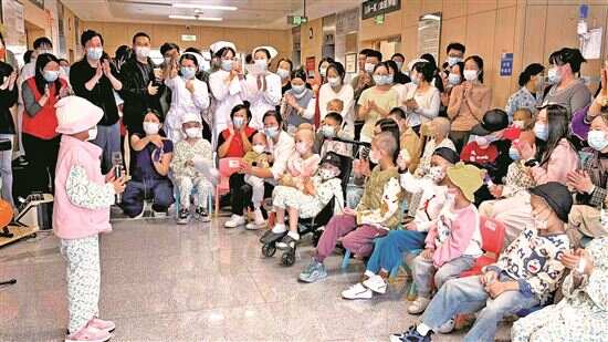 夜色渐浓,病区快乐周四歌唱会曲终人散。孩子们意犹未尽地哼唱着“一闪一闪亮晶晶,满天都是小星星”走过长廊,推开门回到属于他们的病房。“姐姐再见,下周准时来喔!还唱《你笑起来真好看》。”一个小身影走入病房,又开门探出小光头,大声与时静洁道别并约定。