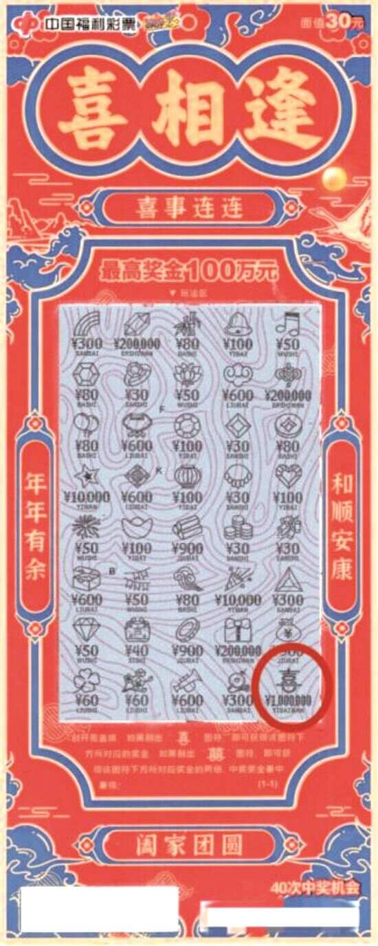 新快报讯 记者陆妍思 通讯员徐荣报道 近日,珠海市香洲区44030819福彩销售站点传出喜讯,一彩民在该站点购买“喜相逢”刮刮乐即开票(面值30元),幸运刮出一等奖,中奖奖金100万元!这是2026年珠海市中出的第一个刮刮乐即开票百万大奖,为新年增添了浓浓的喜庆氛围。