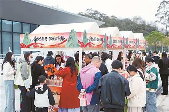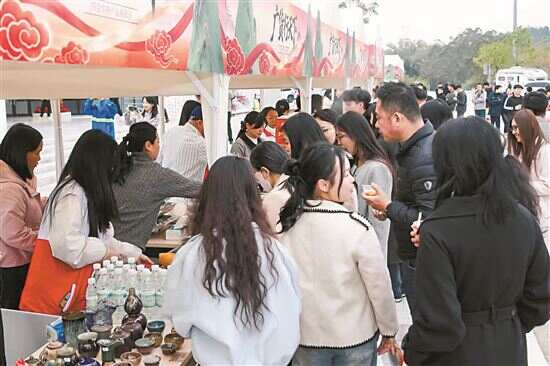 春节临近,地豆服务区特别推出“广货行天下”年货展销专区,砂糖橘、竹升面、百香果、土蜂蜜、非遗陶瓷制品等本地特产琳琅满目,吸引众多返乡旅客驻足选购。