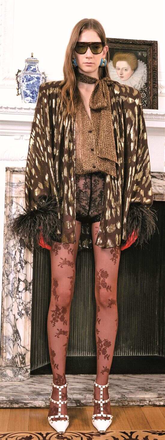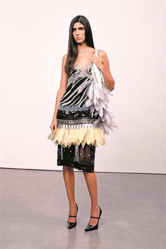 蕾丝、薄纱等柔美单品中和了动物纹样的野性张狂。