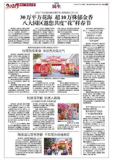 新快报讯 记者王彤 通讯员汪张跃报道 马蹄声声迎新岁,繁花映塔贺丰年。2月14日,“马报春来・遇见花开”——2026广州公园迎春花展在云台花园盛大开启,并将持续至3月15日(正月廿七)。今年春节,白云山云台花园、华南国家植物园、海珠湿地等八大公园将同步启动迎春花展,预计布展面积达30万平方米。其中,云台花园将展出超10万株郁金香。