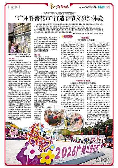 到广州兰圃参加“兰香伴成长·亲子共绘春”亲子研学活动;到省农科院环艺所参与“马年寻芳·兰韵科普大讲堂”;到广州市儿童公园参加“广州儿童花市”,边逛花街边学非遗民俗……2026年广州科普花市于1月31日至3月3日(部分活动延续至3月下旬)举办。活动依托百余家资源单位,推出“逛绿美公园·赏科普花市、游科普基地·享科学魅力、做科普志愿·筑青春梦想、当羊城拍客·晒科普之美、绘植物美图·识花草科趣、答花市趣题·赢科普好礼”六大核心板块,共计超百场特色科普活动,并形成“一点一特色、全域共参与”的生动局面。