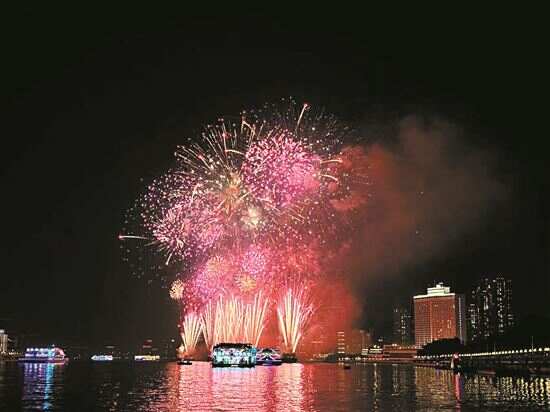 我了解到,本届烟花汇演新增了75种新品类烟花,色彩搭配更丰富多元。高、中、低空烟花总数量超过15万发,其中高空烟花较去年增加近2000发,视觉效果更震撼。相比去年,今年的烟花汇演增加了1艘燃放船与2个浮台,视觉跨度从650米拓展至800米,高度达225米,有效提升外围及远处观众的观赏体验感。整场演出分为五个篇章,其中“五谷丰登“等多组画面为国内首次呈现。