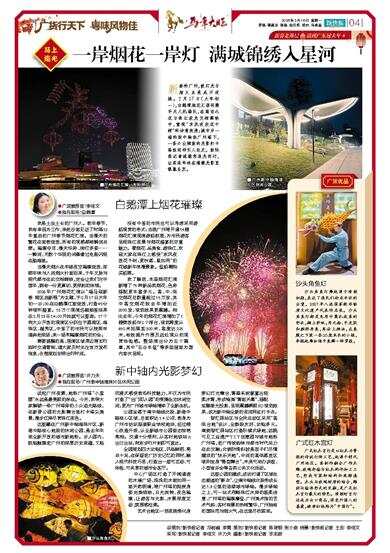 新春的广州,被灯光与烟火点亮成不夜城。2月17日(大年初一),白鹅潭烟花汇演将携手无人机编队,在高空礼花与珠江波光交相辉映中,重现“东风夜放花千树”的诗意浪漫;城市另一端的新中轴线广州塔下,一条小众精致的光影打卡路线同样引人驻足。新快报记者诚邀您追光而行,让浓浓年味在璀璨光影里氤氲生发。