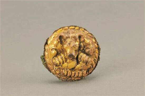 ■兽纹鎏金铜当卢。